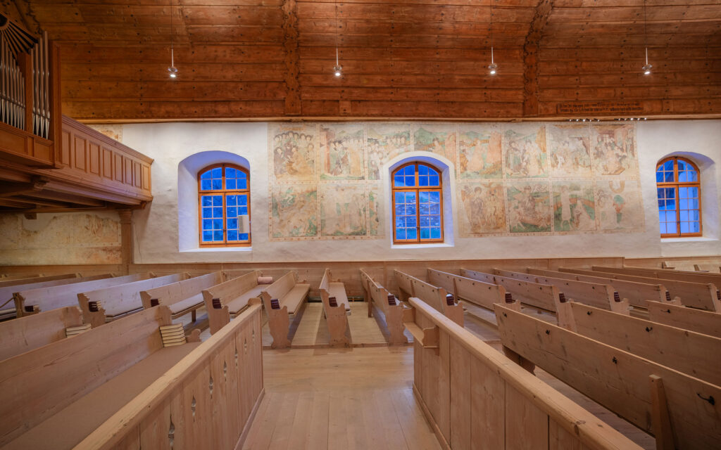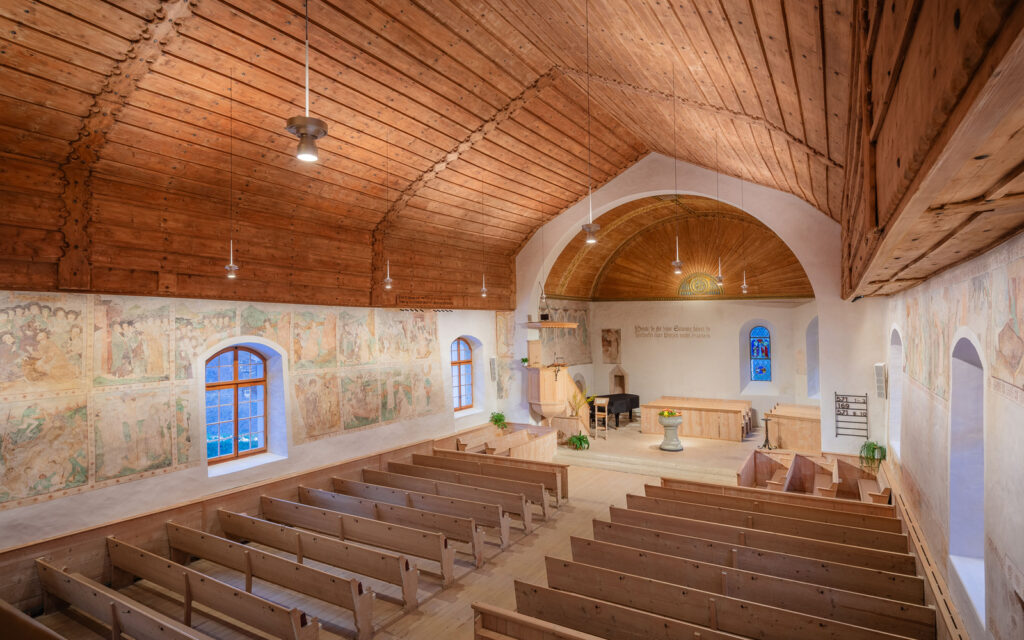 „Die herunterhangenden Leuchten sind sehr filigran und dezent. Die Inszenierung der verschiedenen prägenden Elemente der Kirche finde ich spannend und hervorragend gelöst.“ Fabian Schwarz (Kantonale Denkmalpflege)